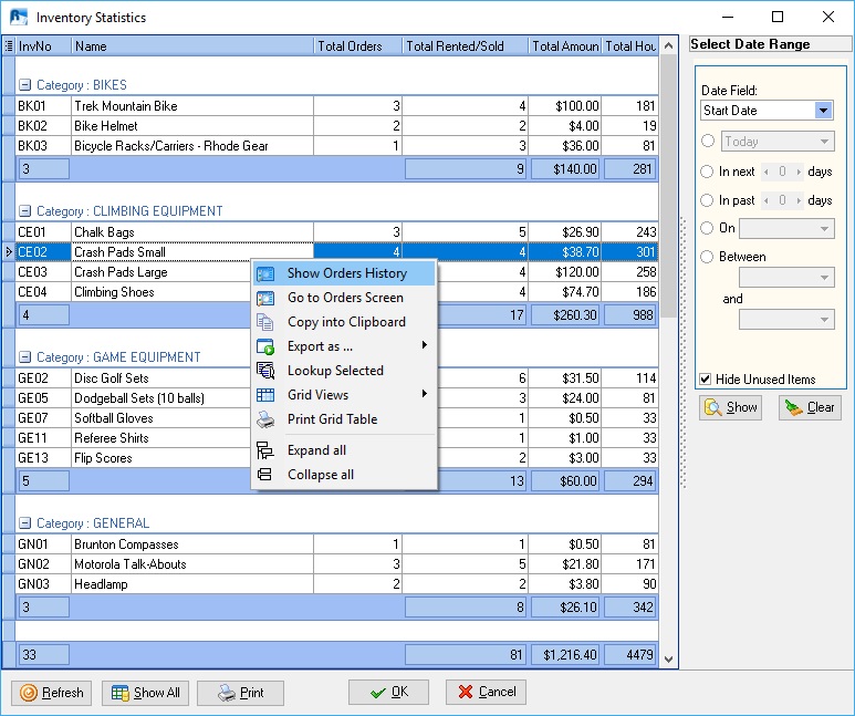 RentMaster gives you powerful options for reporting and printing rental agreements, orders and quotes list, customers and inventory information.