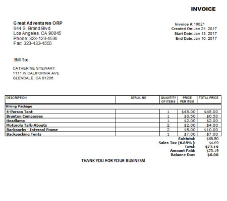 Invoice layout is designed to fit within 2-window envelope so you can simply fold and mail it to the customer. You can add custom text to the end of the printed invoices (thank you message, billing terms, etc.)