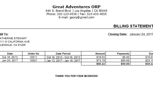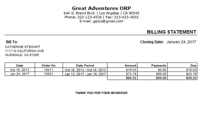 You can generate billing statements for customers using several criteria (all orders, completed orders with balance dues, etc. )